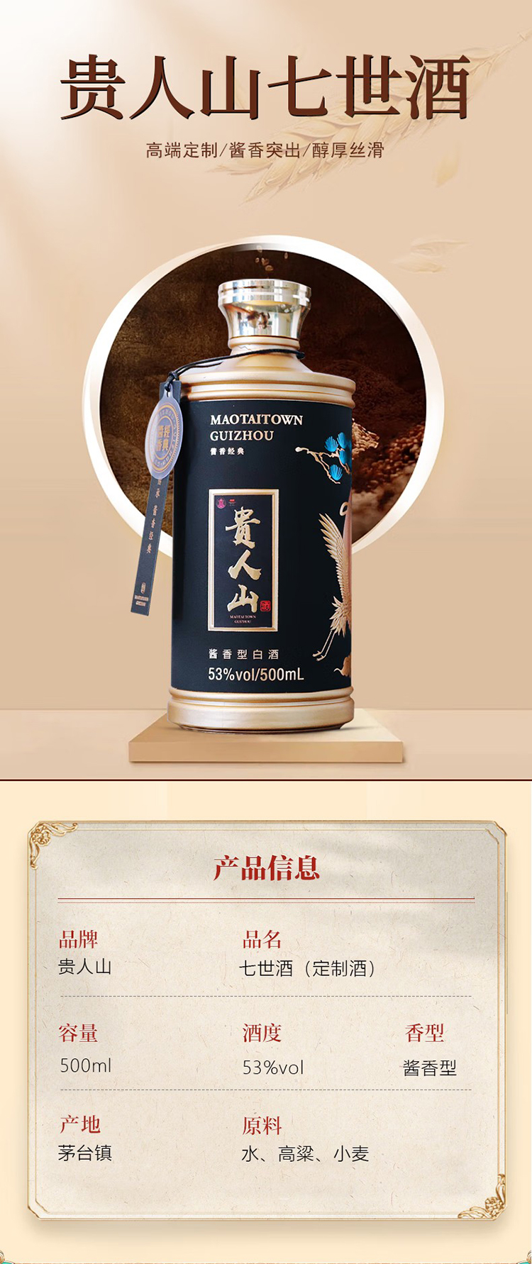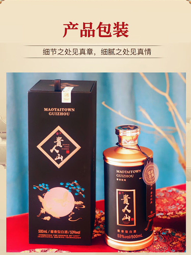 贵人山53度七世酒 白酒 酱香型纯粮食酒 500ml单瓶装 (定制酒) 53度 500mL 1瓶 七世酒